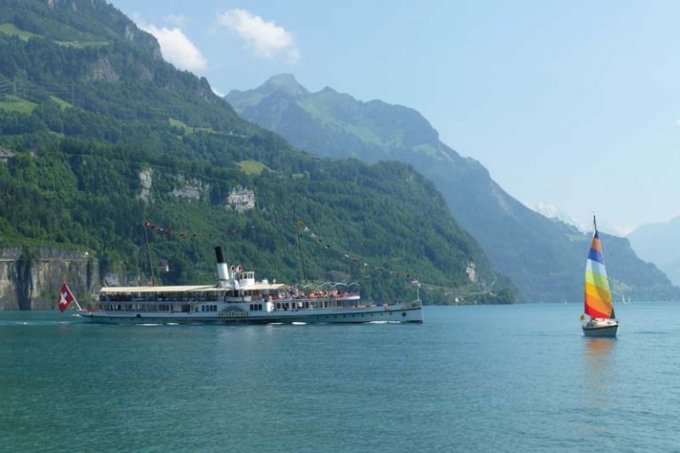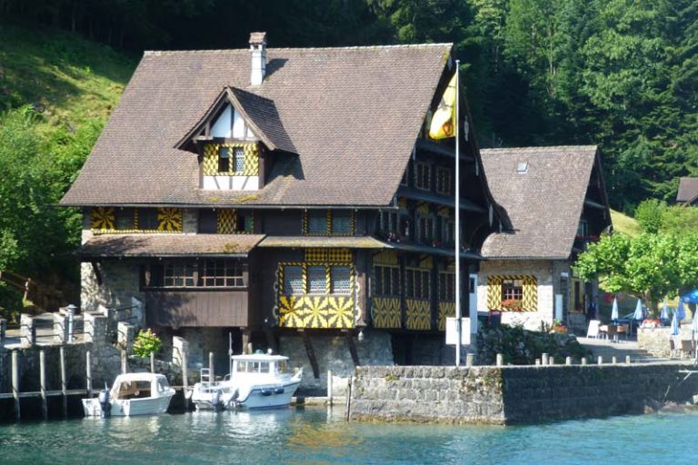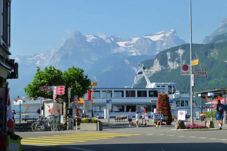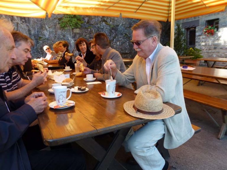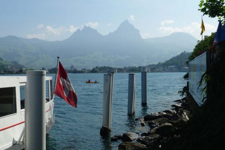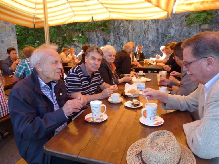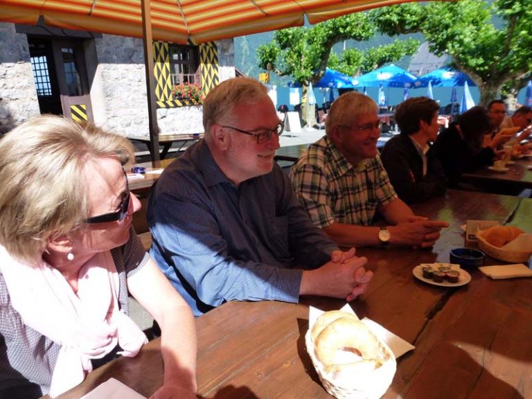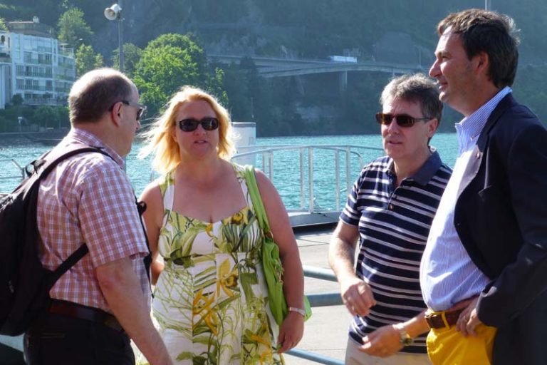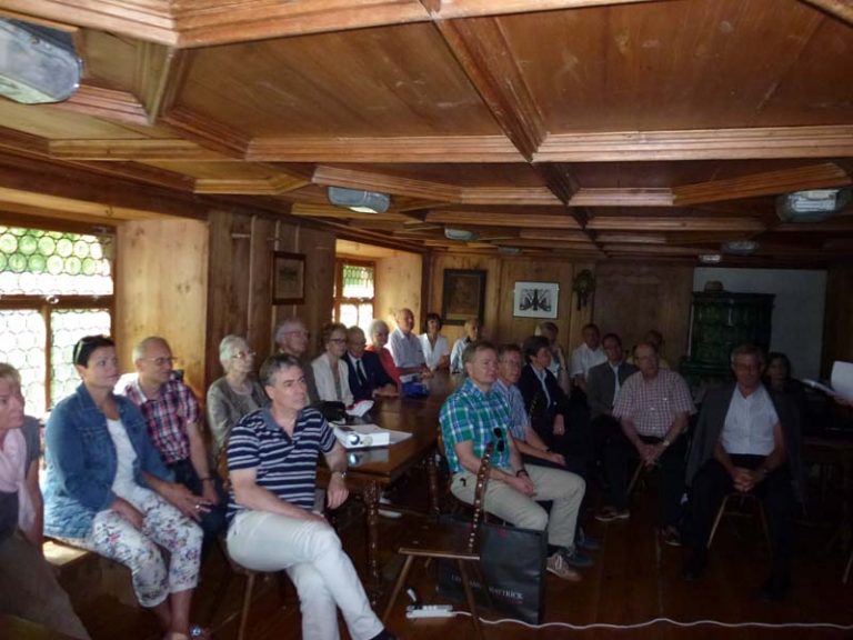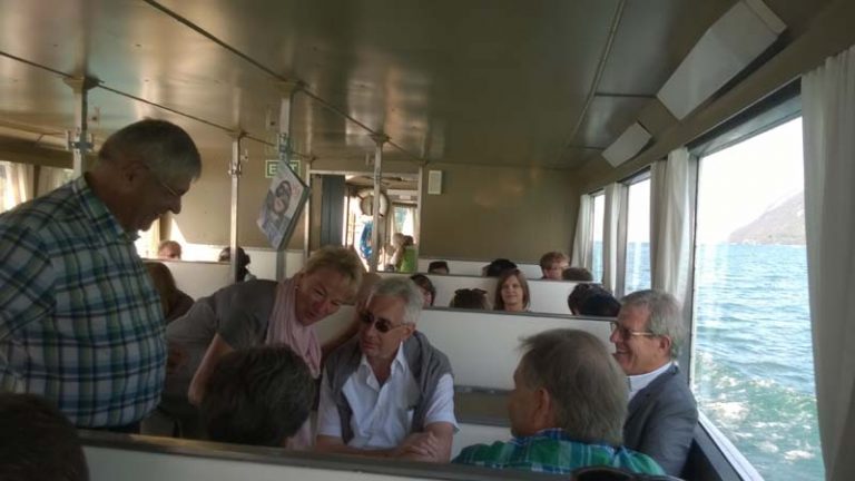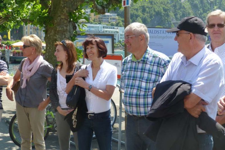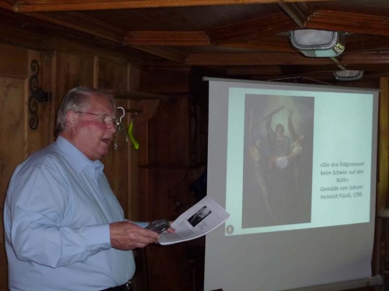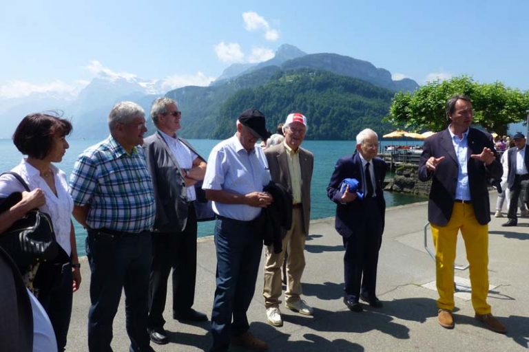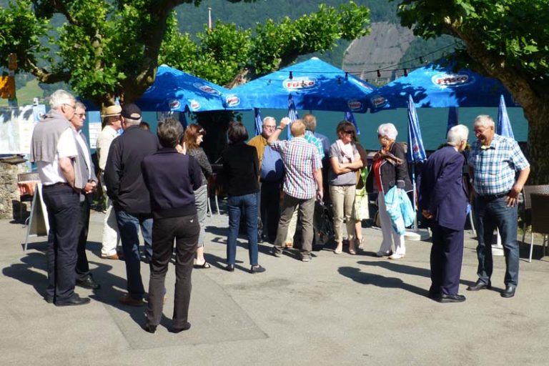 Treffpunkt Schifflände Brunnen: Nach kurzer Überfahrt nach Treib wurde dieser geschichtsträchtige Ort von unserem Präsidenten Peter Wieser zum besten gegeben. Aufmerksam und interessiert sind die Teilnehmerinnen und Teilnehmer der Präsentation und den kompetenten Ausführungen gefolgt.