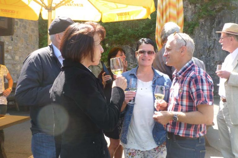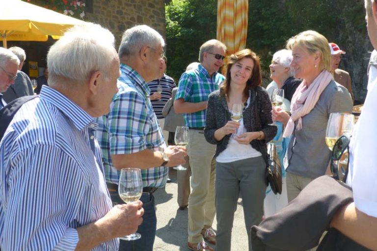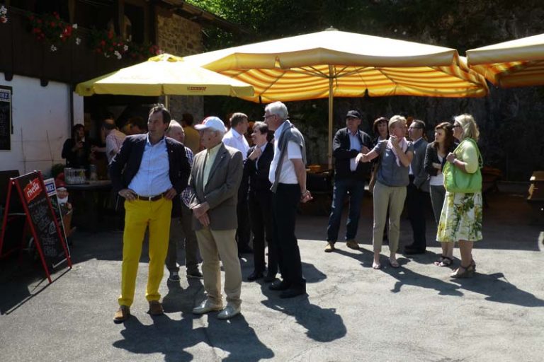 Das angekündigte Jubiläumsgeschenk wurde alsbald überreicht – jeder durfte eine örtliche Köstlichkeit – Etter-Wiliams oder -Kirsch mit der Jubiläumsaufschrift – sein Eigen und Andenken nennen.