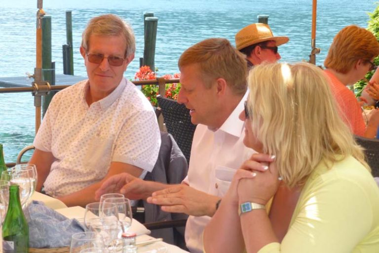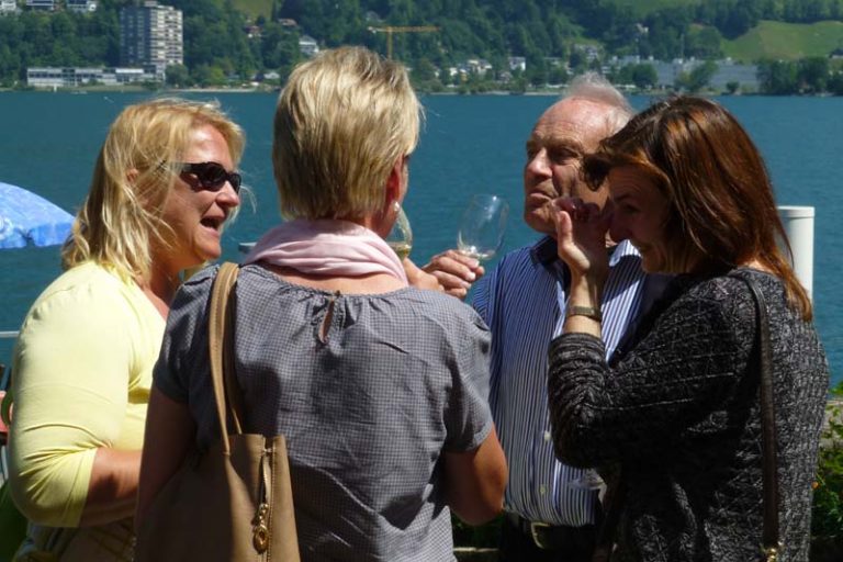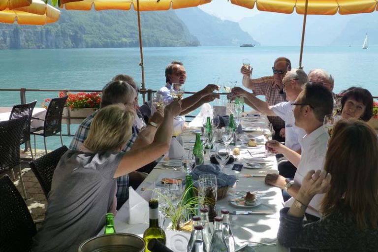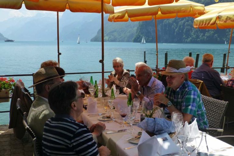 Im Anschluss wurde die Teilnehmerschar zu den allseits und alljährlichen kulinarischen Höhenflügen «überführt». Dem Wetter angemessen fand dieser «Programmpunkt» im freien und am wunderschönen Vierwaldstättersee statt.