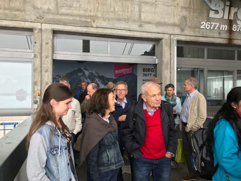 Im Gegensatz zur letzten Versammlung und zugleich Treffen im Berner Oberland wird man den Spruch aus Dienstzeiten gedanklich nicht los – «Es gibt kein schlechtes Wetter, nur eine ungeeignete Kleidung!» Dem Wetter trotzend trafen sich über 30 Mitglieder des Verein 91 an der Talstation zum Schilthorn in Stechelberg. Nach einer kurzen Einführung und Billett Ausgabe durch den Lokalmatador Peter Feuz, ging’s dann schon mal steil nach oben nach Mürren. Mit Kaffee und Gipfeli bewaffnet durften wir der interessanten Erzählung der Rettungsaktion «Hotel Regina» durch den Alt Nationalrat Peter Vollmer beiwohnen. Nach dem Motto – «Eine Attraktion jagt die andere» war ein weiterer, sehr eindrücklicher Programmpunkt angesagt. Peter Brunner, seines Zeichens «Pistenwart» und leidenschaftlicher Fotograf, präsentierte unter dem Titel «Berner Alpen» traumhafte Bilder der hiesigen Bergwelt. Ebenso wurden wir Zeugen der Arbeitsintensiven Präparierung der Skipisten. Dies nota bene täglich bzw. nächtlich! und mit grossen Risiken verbunden. An einer Generalversammlung soll der formelle Programmpunkt – die Versammlung selbst – nicht fehlen. Neben einer Minute im Andenken an die verstorbene Lilo Augsburger im vergangenen Vereinsjahr mussten wir auch zwei gestandene Vorstandsmitglieder verabschieden. Sandro Vanoli und Peter Feuz haben sich entschieden den Sessel im Vorstand frei zu machen. Den beiden gebührt ein herzliches Dankeschön für ihren grossen Einsatz und Grosszügigkeit im Vorstand. Als Nachfolger durften wir Xaver Stirnimann sowie Christof Strässle (amtierender Revisor) vorschlagen und mit Akklamation im Vorstand herzlich willkommen heissen. Die dadurch vakante Rolle des Revisors wurde mit Beat Zeugin in Abwesenheit neu besetzt. Herzliche Gratulation und herzlich willkommen! Nach einer weiteren Seilbahnfahrt ging es dann hoch zum Schilthorn wo auch schon der Apéro und das anschliessende Mittagessen vorbereitet waren. Der Besuch des Rundgangs «Bond World 007» rundeten den offiziellen Teil ab und zum späteren Nachmittag hiess es für das Gros wieder talwärts fahren. An der Stelle möchte ich mich im Besonderen bei Peter Feuz für das Sponsoring des Apéro’s sowie die Bahnfahrten herzlich bedanken!