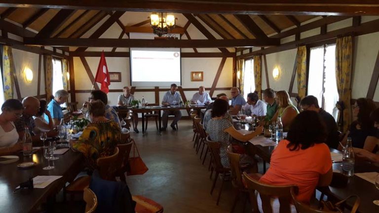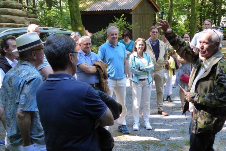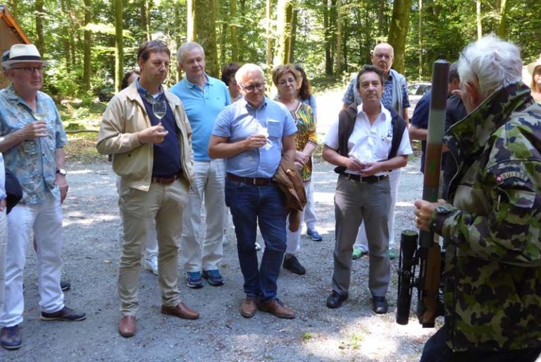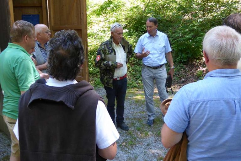 Im Anschluss duften die Teilnehmer eine «Halböffentliche» Festung in der nahen Umgebung unter fachkundiger Anleitung des Leiters historischer Projekte, Felix Werner Nöthiger (www.pro-castellis.ch), besuchen. Dass hier weder fotografiert noch Filmaufnahmen gemacht werden durften, versteht sich von selbst obwohl der eiserne Vorgang längst Vergangenheit ist. Mit dem Fokus auf die vielfach zitierte «Geheimarmee P26» (Projekt 26) wurden auf sehr interessante Weise die Fakten auf den Tisch gelegt bzw. auf Plakaten aufgezeigt. Ein Filmdokument zeigt in den ersten Minuten die Situation der Schweiz zwischen Nazi-Deutschland unter Hitler sowie das Faschistische Italien unter Mussolini auf. Dass die Schweiz hoch offiziell hätte als nächstes zwischen den beiden Ländern aufgeteilt werden sollen, zeigt die brisante und vor allem bedrohliche Situation in der sich die Schweiz damals befand auf. Dass seitens Politik daraus der Auftrag unter dem Titel «Vorbereitungen der Schweizer Armee für den Widerstand im feindbesetzten Gebiet» (zwischen 1940-1990!) entstand sollte auch aus heutiger Sicht verständlich sein. Die P26 trat erst 1981 in «Aktion». Ebenso wurde in den Ausführungen von Herr Nöthiger auf den Schlussbericht aus dem Jahre 2018 verwiesen, welcher nun endlich die Wahrheit aufzeigen soll an deren die damaligen PUK’s (Parlamentarische Untersuchungskommission) offenbar in keinster Weise interessiert waren obwohl alle Fakten schon damals auf dem Tisch lagen. Hintergrund dafür war vermutlich die politische Gesinnung der einzelnen PUK-Mitglieder…
