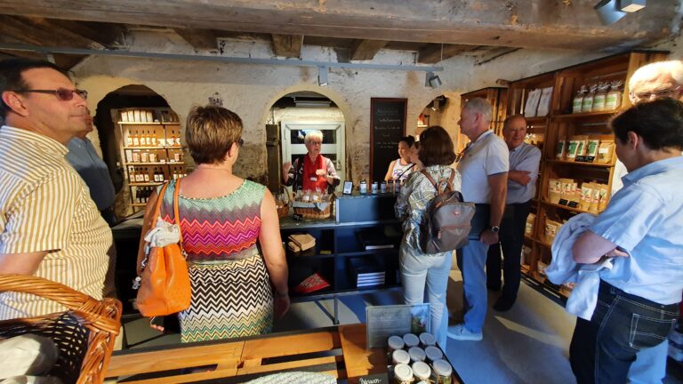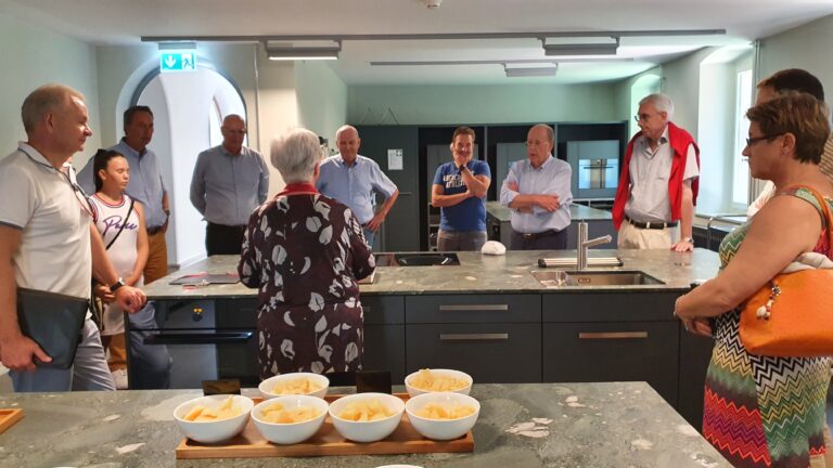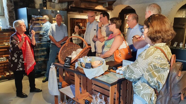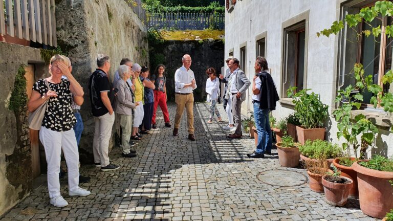 Mit Interesse konnten die 29 Teilnehmer anlässlich einer Führung durch die Anlagen des ehemaligen Klosters die Vielfalt an Nutzpflanzen, Produkten und Rezepten des Alpenraumes erleben und geniessen. Dabei hat der Apéro mit dem würzigen Alpsprinz und einem feinen Tropfen die Führung gediegen abgerundet.