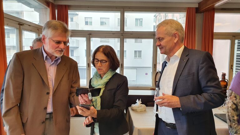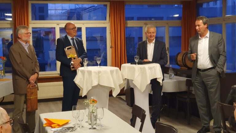 Die Freude, sich endlich wieder ungezwungen treffen zu können, war merklich gross. Intensiv wurde der Apéro genutzt, um sich zu vergangenen und aktuellen Zeiten auszutauschen. Militärisch pünktlich um halb sieben startete das mit Spannung erwartete rund einstündige Gespräch der beiden Referenten mit dem Moderator Christof Strässle zum Thema «Coronavirus und Mutanten aktuell». Christof stellte Fragen zur aktuellen Lage, zum Umgang der Entscheidungsträger mit den Herausforderungen der letzten 18 Monate, zur psychischen und physischen Belastung und zu den Erwartungen bezüglich des Coronavirus in der Zukunft. Danach wurde die Fragerunde geöffnet, was von den Teilnehmenden intensiv genutzt wurde.