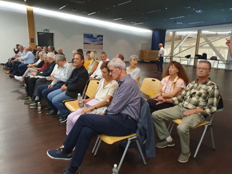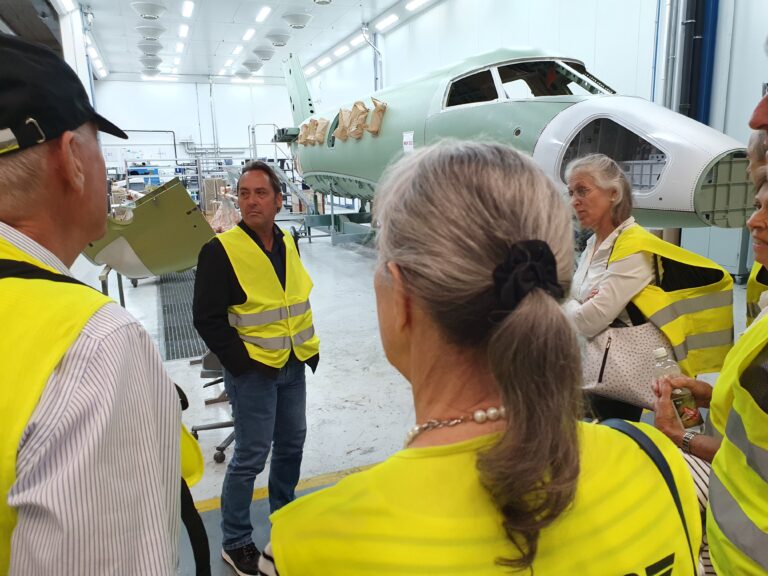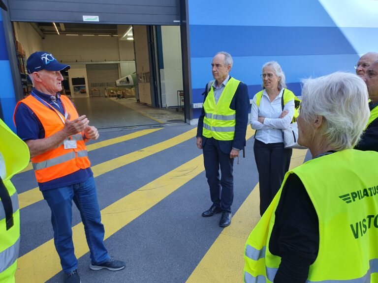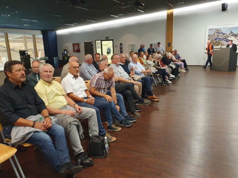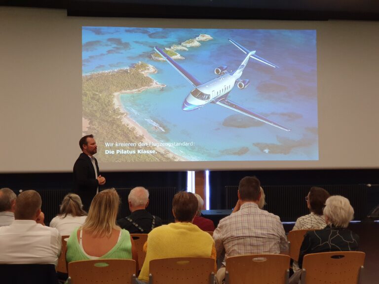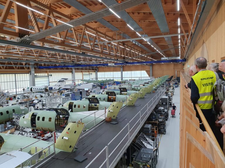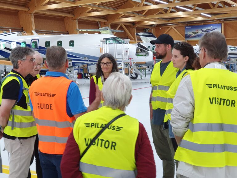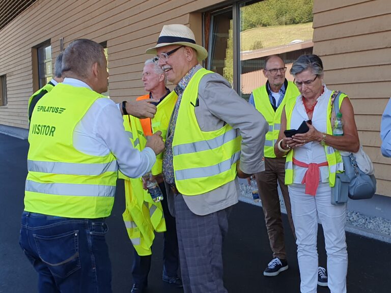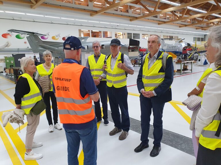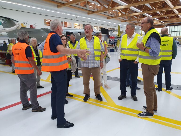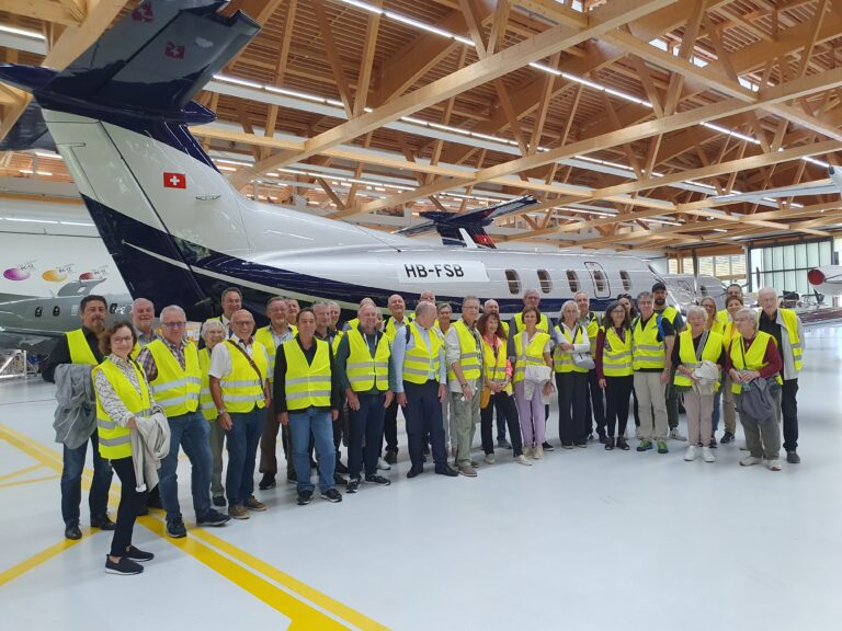 Zum Herbststamm 2023 treffen sich 38 Mitglieder des VEREIN91 bei den Pilatus Flugzeugwerken in Stans. Der Grossaufmarsch wurde durch eine sehr interessante Führung belohnt. In 4 Gruppen, durch kompetente Guides geführt, konnten wir während rund 2 Stunden modernste Flugzeugherstellung erleben. Die Pilatus Flugzeugwerke Stans ist eine weltweit tätige Vorzeigefirma im Flugzeugbau. Sehr beindruckt haben uns die eleganten, schnittigen zivilen PC 12, 24 und die Trainer PC 7, PC 9 und PC 21. Dabei erfahren wir, dass der PC 21 als Turbotrainer das weltweit einzige Flugzeug ist, mit dem die Piloten nach der Schulung direkt auf verschiedene Kampfjets umsteigen können. Ebenfalls einmalig ist die Landefähigkeit des PC 24, als ziviler Jet, auf normalen Graspisten. Diese Fähigkeit erlaubt ihm, weltweit mehreren hundert zusätzliche Landemöglichkeiten zu benutzen.